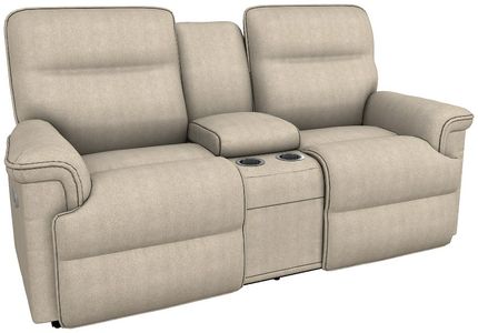 The Jay Power Reclining Loveseat with Headrest, Lumbar, and Console has a casual flow and convenient storage for drinks and remotes. Welt trim and softly sloped arms add verve to clean-lined cushioning while the headrest and lumbar offer optimal support.Read More